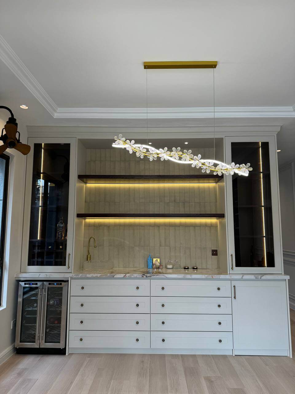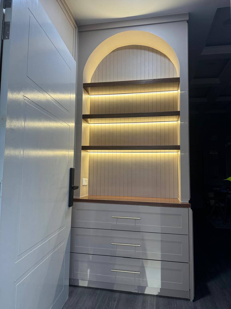 Penyediaan pelbagai jenis perabot kayu seperti rak, almari, dan unit penyimpanan lain yang direka khas untuk melengkapkan ruang rumah pelanggan.