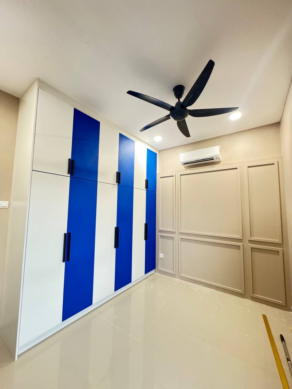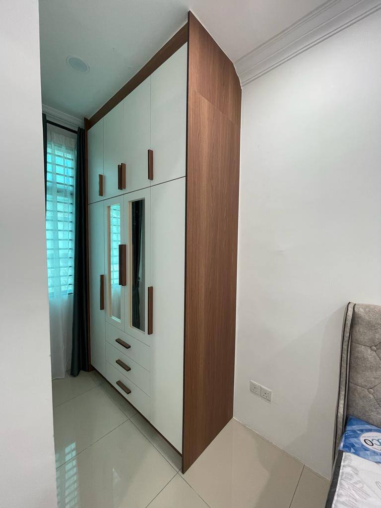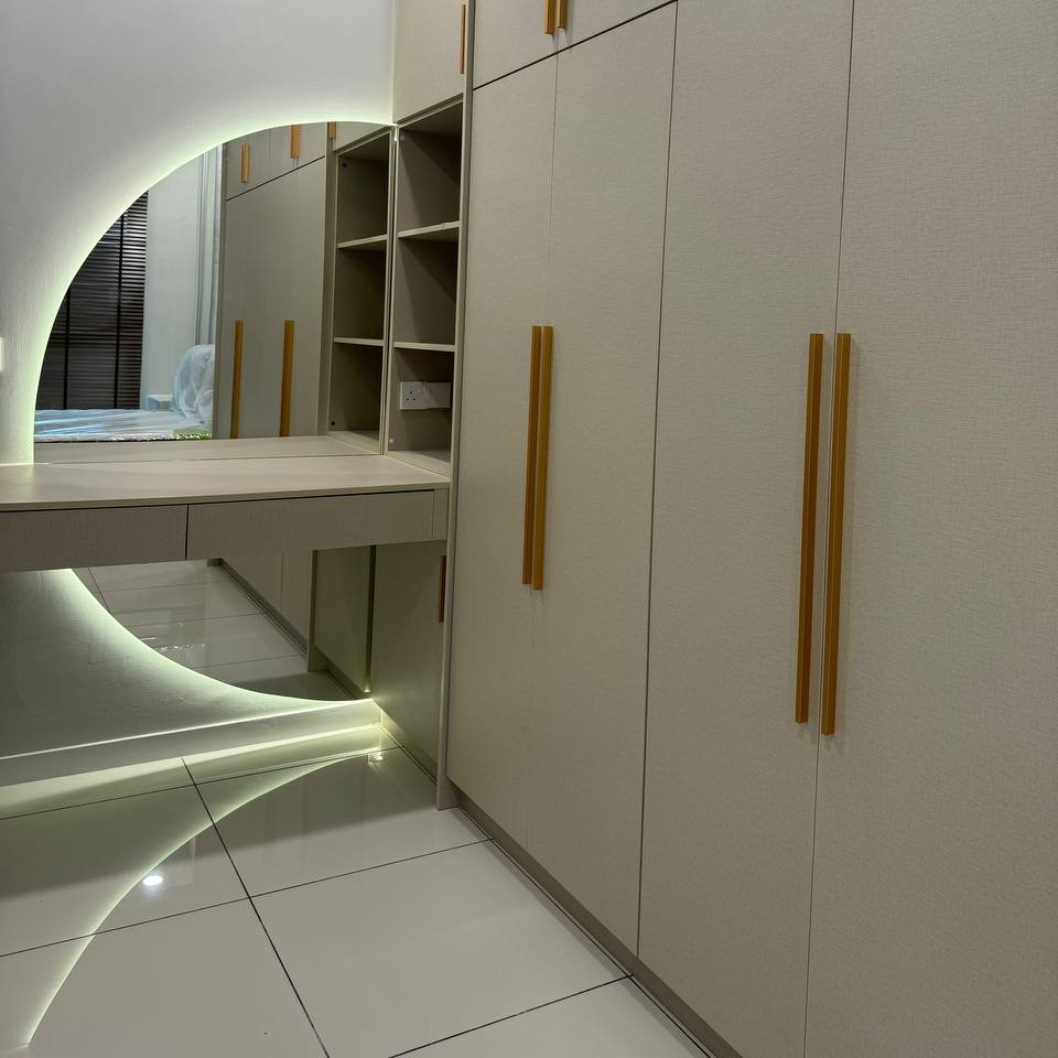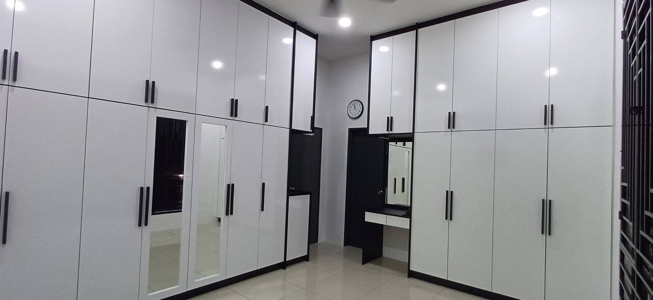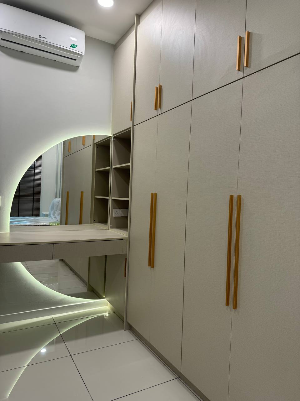 Wardrobe berkonsep moden dan praktikal, dibina khas untuk memenuhi